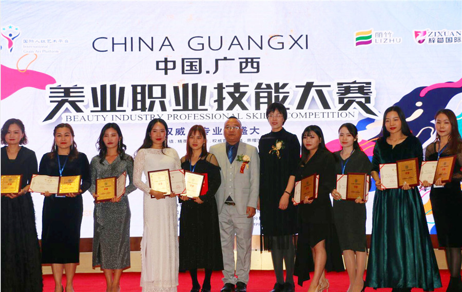 獲獎名單:吳冠芹(美容)、吳秀妮(美發(fā))、蒙金妮(美甲)、趙小花(紋繡)盧艷芳(彩妝)