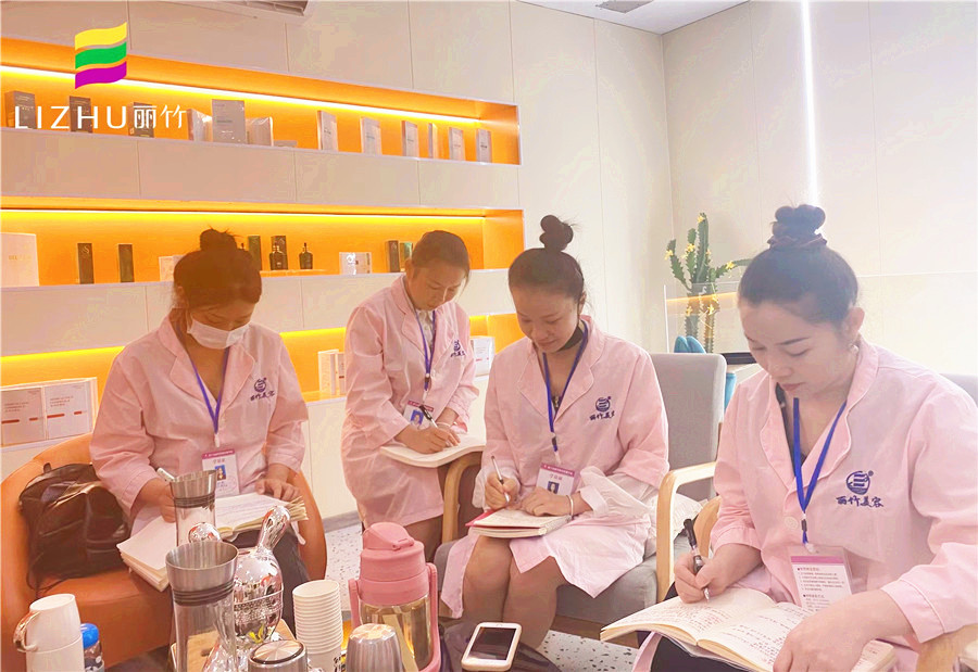 參觀完店面的環(huán)境后,學(xué)員們便開始了接下來(lái)為期5天的到店實(shí)習(xí)培訓(xùn)學(xué)習(xí)。早上進(jìn)行的課程是崗前培訓(xùn)的一些理論知識(shí),以及店面開設(shè)項(xiàng)目的手法概述以及招待禮儀。想要檢驗(yàn)技能掌握的熟悉程度,就必須通過(guò)實(shí)踐去體現(xiàn)出來(lái)。于是,下午的課程學(xué)員們將會(huì)投入到真正的工作中,去鍛煉和提升技術(shù)。