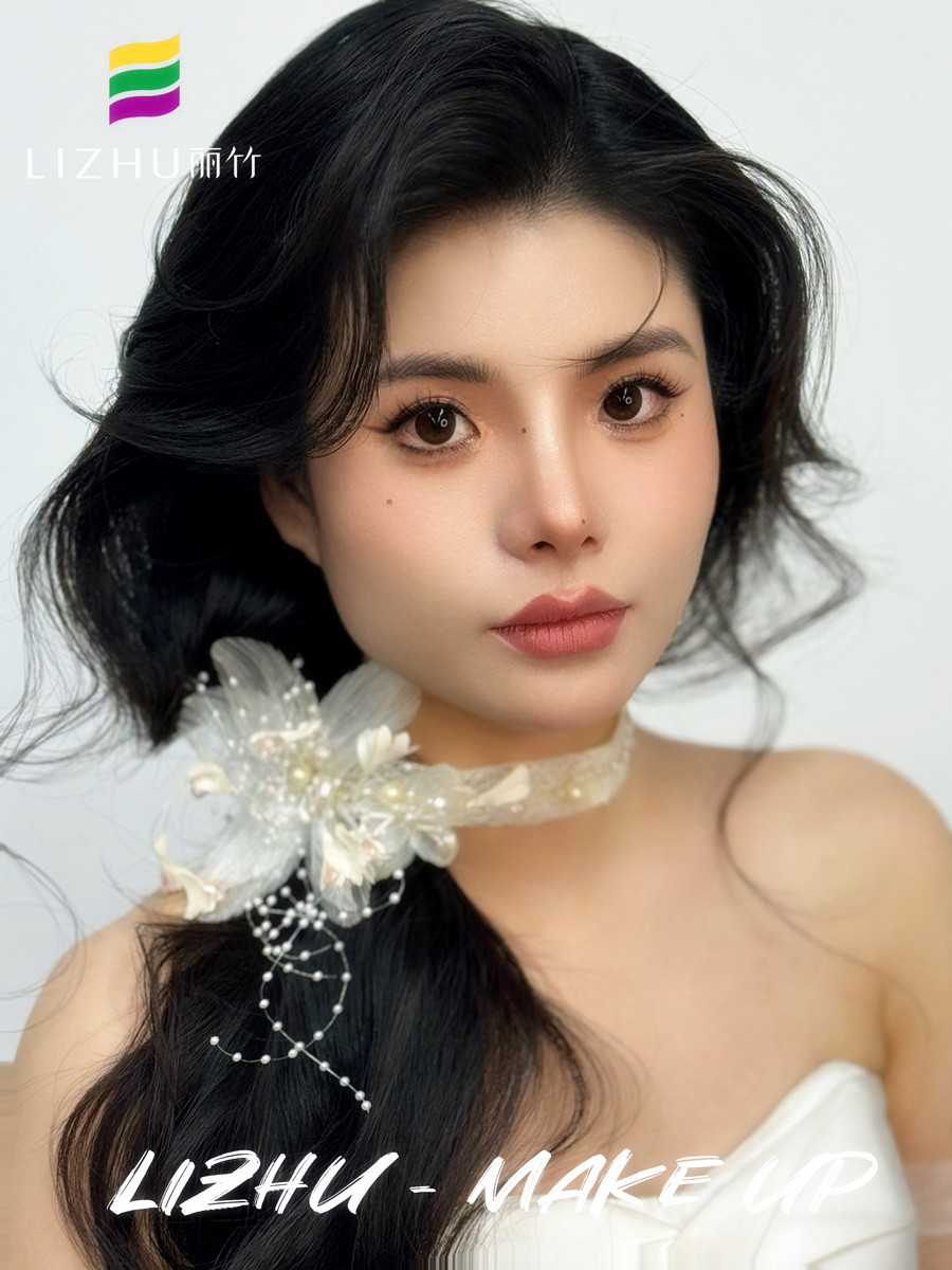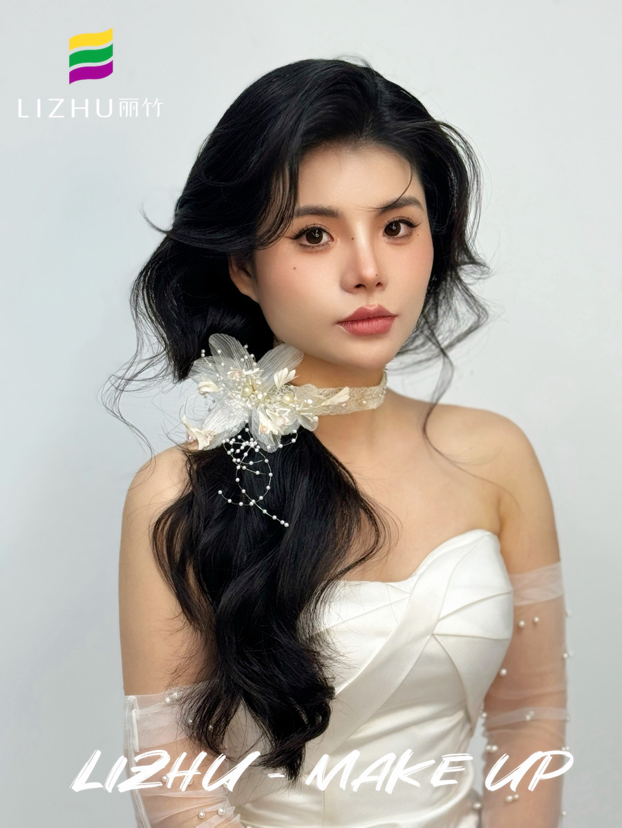 廣西學(xué)化妝影樓、廣西寫(xiě)真化妝,廣西新娘妝跟妝培訓(xùn)(麗竹寫(xiě)真化妝培訓(xùn))--- 韓式側(cè)扎紋理新娘:氧氣清新的自然無(wú)痕妝容,優(yōu)雅隨意的紋理韓式卷發(fā),白色蕾絲珠花頭飾側(cè)扎發(fā),打造氣質(zhì)滿(mǎn)滿(mǎn)的元?dú)饷郎倥?