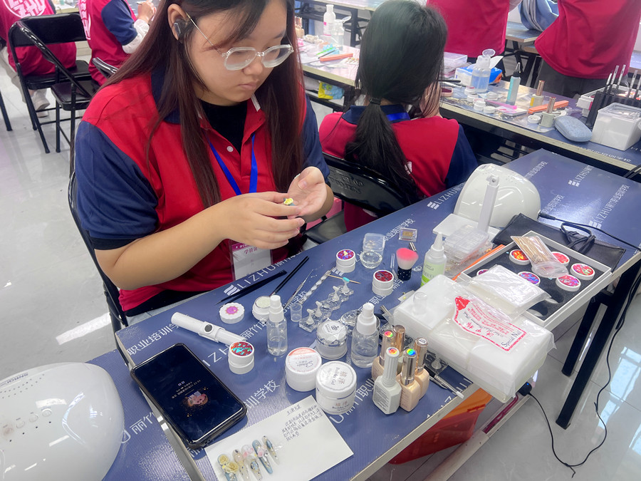 沒基礎(chǔ)學(xué)美甲學(xué)員正在進(jìn)行美甲作品制作