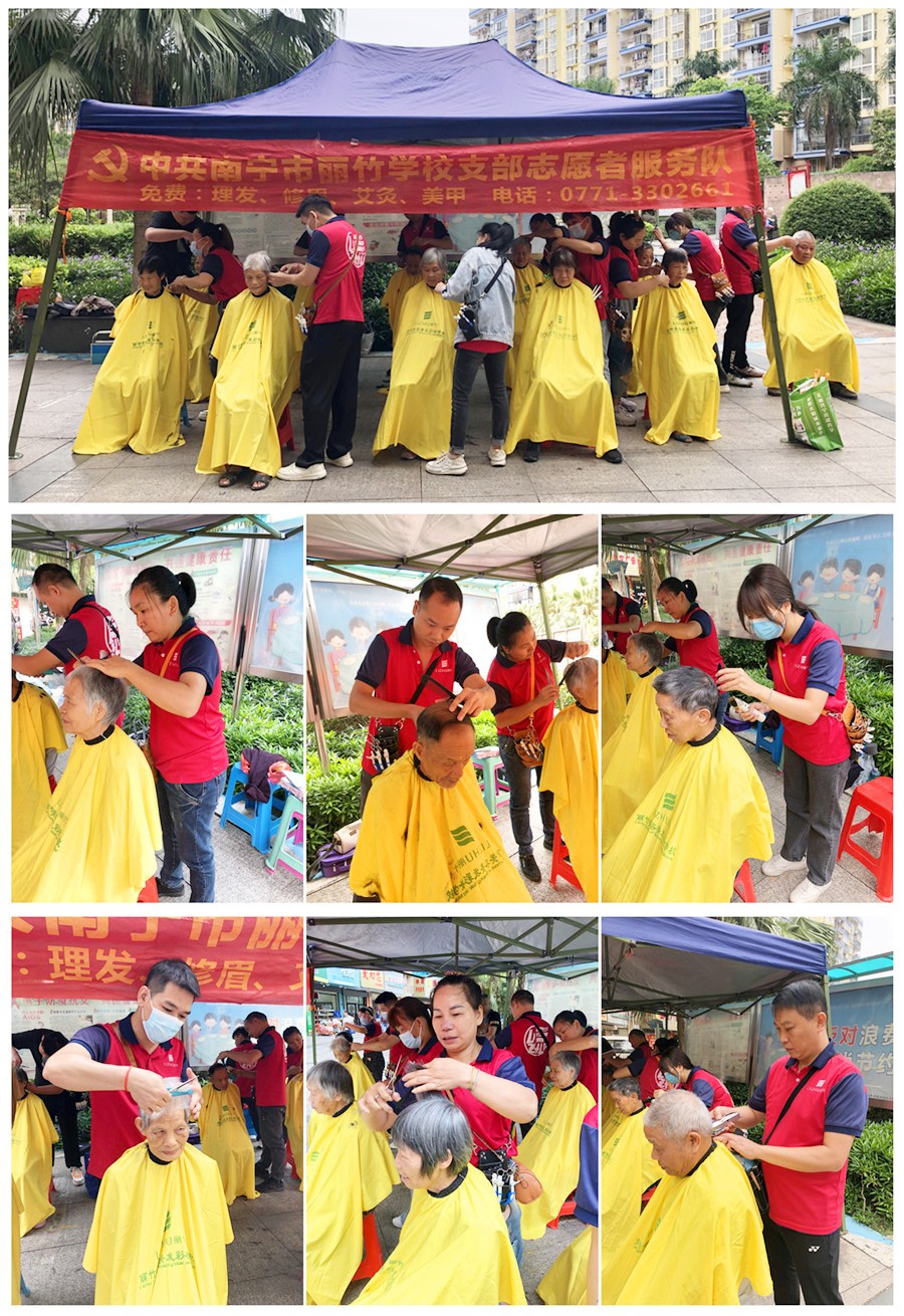 廣西理發(fā)活動、廣西學理發(fā)剪發(fā):迎接10月到來的方式有很多種,廣西美發(fā)技術(shù)培訓班的同學們以深入到小區(qū)為居民提供惠民理發(fā)服務(wù)的形式,去開啟了10月的大門。